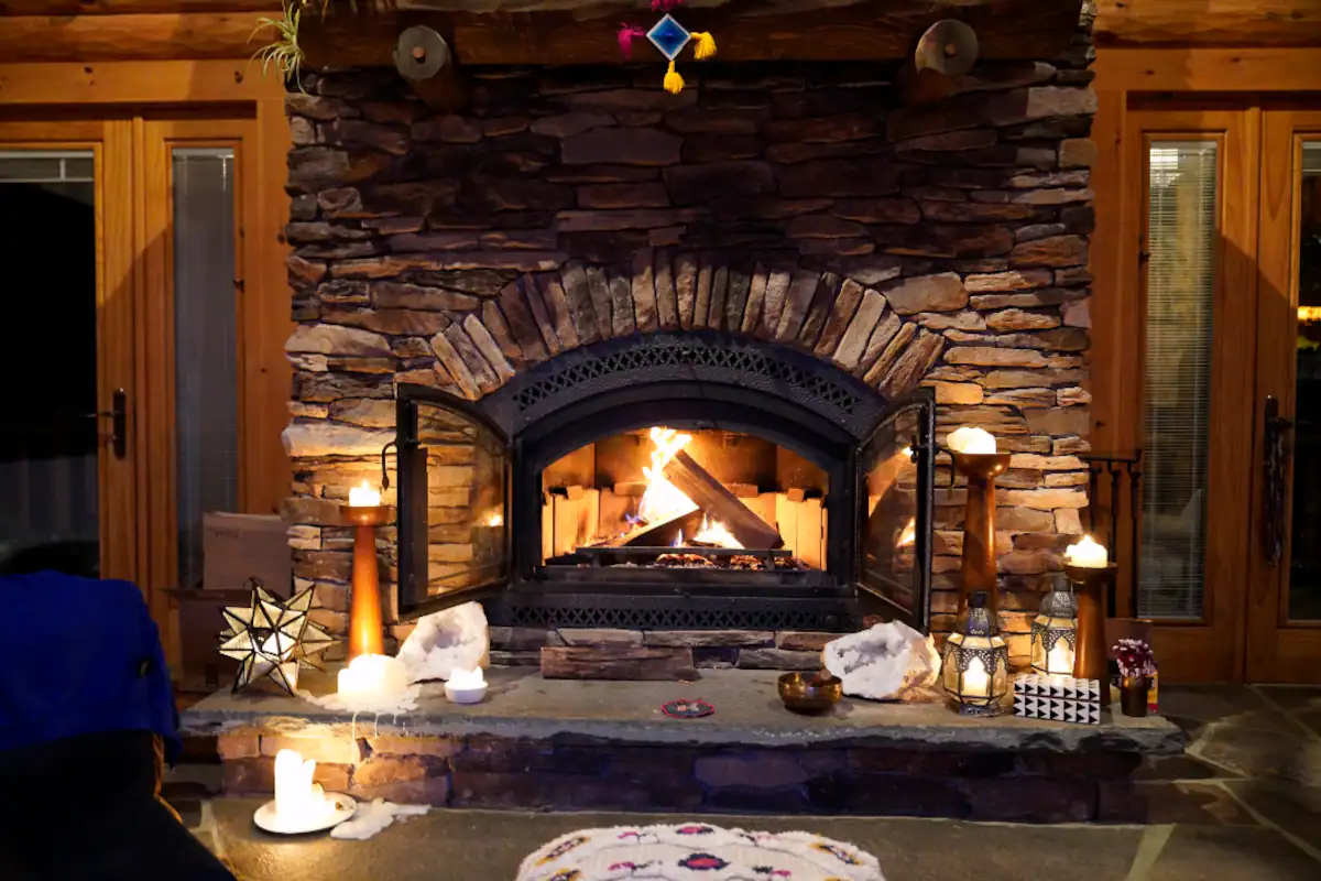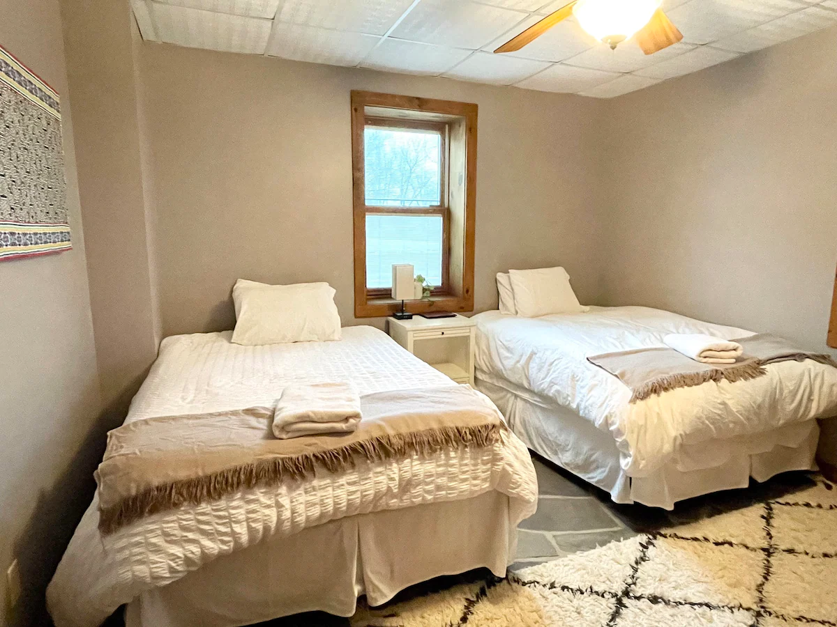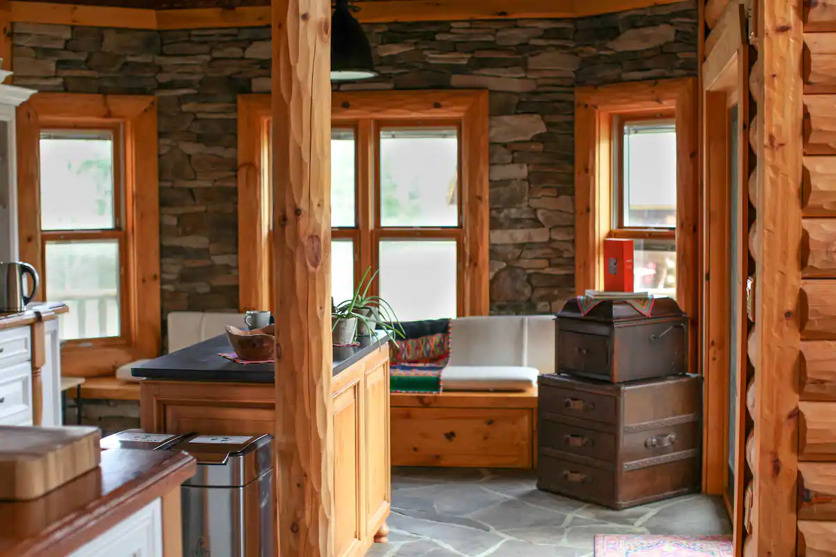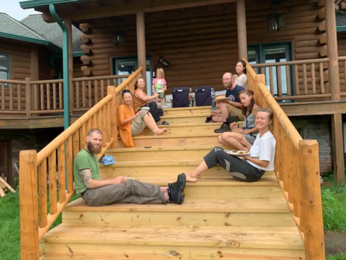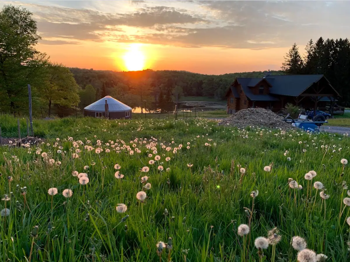 The main lodge is available year-round. With 8 bedrooms and 4.5 bathrooms, we have bed space for 24 adults. In the warmer months, we can accommodate an additional 12 adults in glamping tents with comfortable beds. We also have a 30-foot yurt, perfect for meditations, yoga, or conscious movement practices.