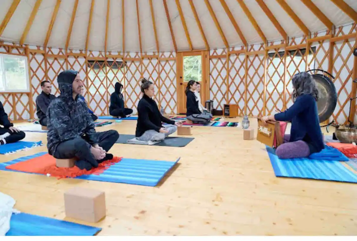 Next to the main lodge is our 30-foot yurt with wood floors, equipped with plenty of equipment for yoga, meditation, breathwork, conscious dance, and other wellness activities. This is available upon special request, for an additional charge.